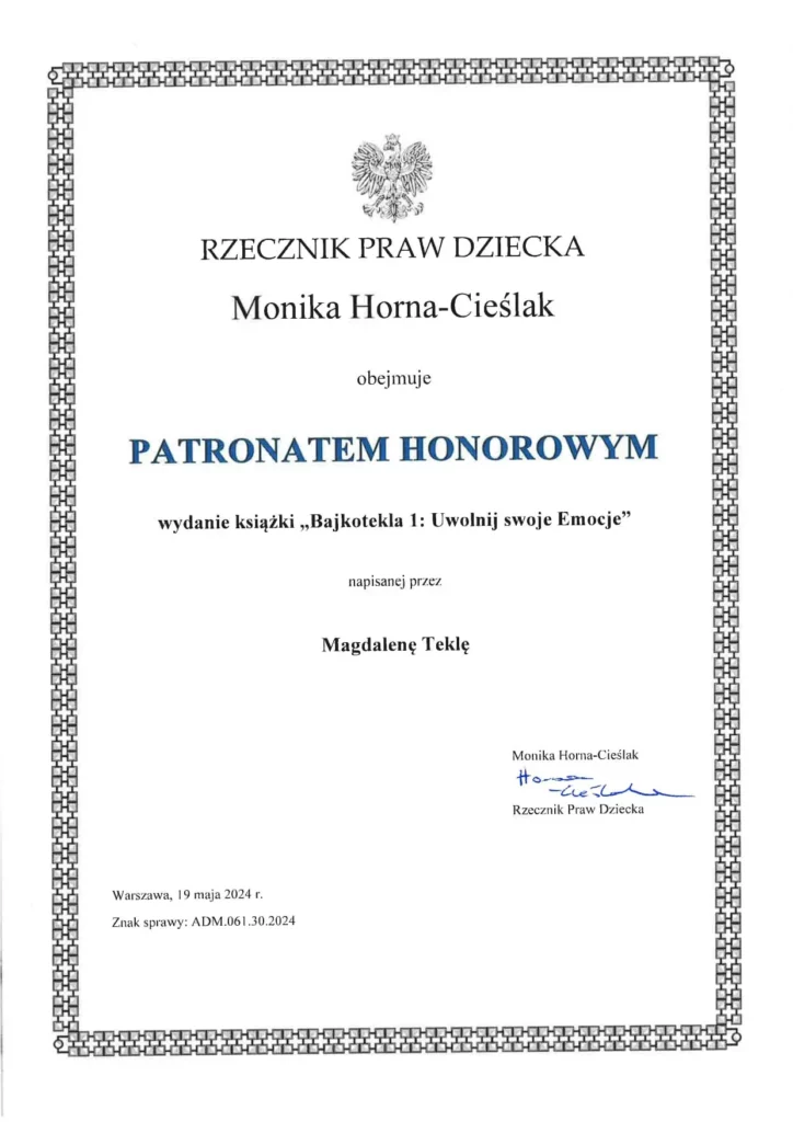 To prawdziwa pogromczyni smutków i strachów. Urodziła się w Tychach i od dziecka lubiła pomagać innym – trochę jak superbohaterka tylko zamiast peleryny ma magiczne bajki. Uczy dzieci jak zaprzyjaźnić się z emocjami nawet tymi , które wyglądają jak czerwone potwory z jednym okiem.